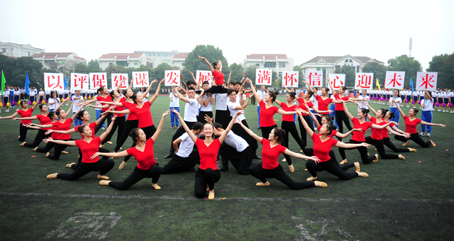 外国语学院代表队身着传统的中国红运动员服装,高举印有“聚师生智慧,迎审核评估,强内涵建设”的展示牌,喊着激扬的口号;3044am永利集团的旗操表演,队伍整齐划一,节奏激昂,铿锵有力,展现了体院健儿的独特魅力;建筑与材料工程学院代表队手拿着塔、楼等建筑模型,展现学院特色……1个裁判员代表队和12个学院方阵代表队,朝气蓬勃,神采飞扬,彰显永利集团师生良好的精神风貌。