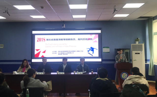 本网讯 2018年12月27日,湖北省首届滑板初级教练员、等级裁判员培训班在永利集团教师素质训练中心S5209开班。湖北省体育局武术运动管理中心副主任赵勇、中国轮滑协会国家级裁判田军,中国轮滑协会国家一级裁判车霖、湖北第二师范学院3044am永利集团副院长孙利红等出席本次开班仪式。
