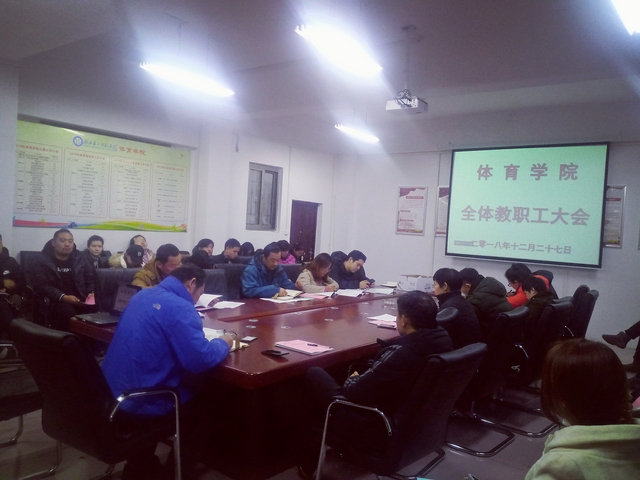 本网讯(通讯员 向琴英) 3044am永利集团十二月份全体教职工大会于27日下午2:30分在会议室召开。大会进行了审核式评估工作总结、近期工作布置及教职工政治理论学习。总支书记张绍明主持大会。