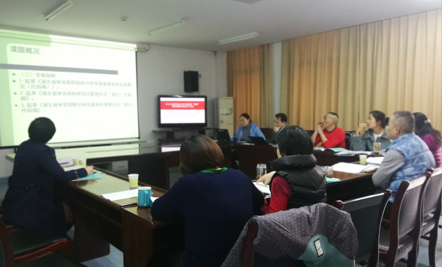 王惠老师从课题概况、目前课题的总体进展情况、研究的阶段成果、问题和困惑、改进的措施、后期建设计划等六个方面展开汇报。会上,各位专家充分肯定王老师前期的调研,为体育科技工作者服务政策落地,做了很好的铺垫。同时,与会人员就体育科技工作者能力提高的保护政策、权益保护政策、政府购买体育科技工作者服务的相关支持政策及此次“两会”期间李克强总理的报告“包干制”进行了讨论。(审稿:孙利红)