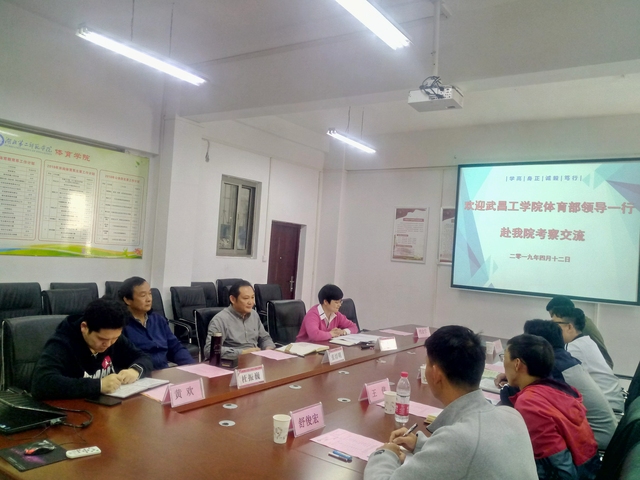本网讯(通讯员 向琴英) 4月12日下午2点,武昌工学院体育部负责人张胜利部长一行5人来永利集团进行考察交流学习。学院党总支书记张绍明、院长沈友青、副院长杜振巍、实验室负责人代会莹及党政办公室主任黄欢等在会议室与武昌工学院的同仁们进行了交流。