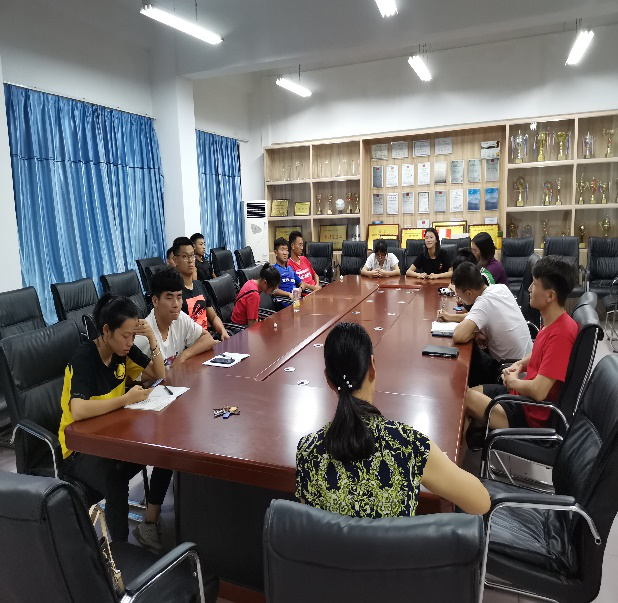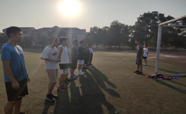 两位老师除了不定期检查训练队学生的早操指导情况外,每周四晚上都会召集训练队所有成员对近一周的早操情况进行反馈,针对出现的问题及时进行分析解决。同时进一步加强对训练队学生的教学技能的培训。