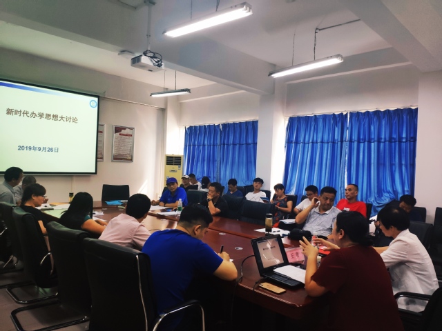 本网讯(通讯员 向琴英) 9月26日下午,3044am永利集团在会议室举行办学思想大讨论主题宣讲会。宣讲会由学校宣讲团成员、学校办公室主任王青主讲,体育学院全体教职工参加,院长沈友青主持会议。