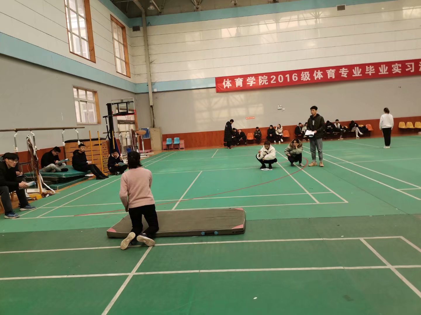 (本网讯)为了契合师范专业认证标准要求,以学生的学习成果为导向,指导学生理论与实践结合,进一步提高学生的实践教学能力,为扎实的教育实习做好充分的准备,体育教育专业17级学生在王丹老师的组织下于2019年12月26日下午在体育馆进行了无生模拟授课的教育研习。