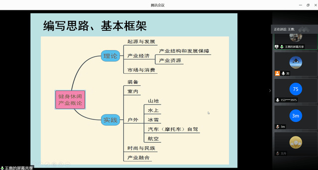 会上,《健身休闲产业概论》教材主编王惠通过PPT向与会人员详细介绍该教材编写的前期学习、编写思路、基本框架、成员分工、基本体例、编写进度及编写过程中遇到的困难。