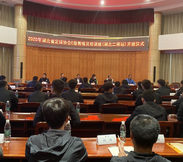 本网讯(融媒体见习记者陈梦婷)11月19日上午,2020年湖北省足球协会E级教练员培训班(湖北二师站)开班仪式在行政楼一号会议室顺利举行,副校长夏力出席,湖北省足协青训部部长王涛、中国足协教练员讲师严壁政、湖北省足协技术主管李鹏、体院书记张绍明参加,体院副院长杜振巍主持活动。