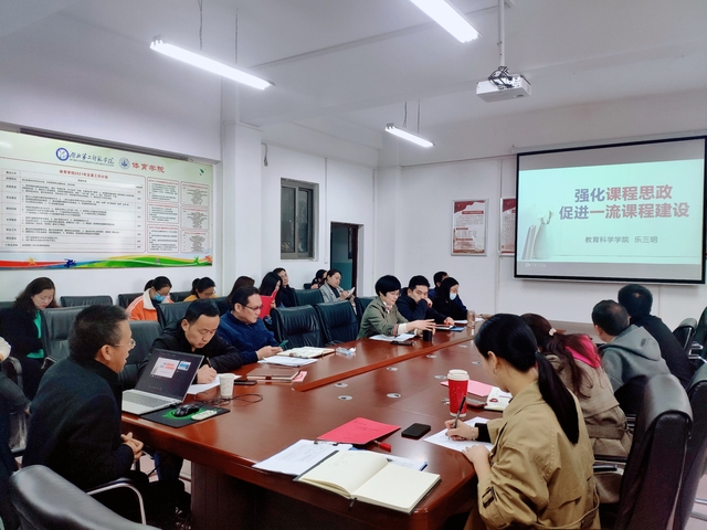 本网讯(通讯员 向琴英)4月1日下午,永利集团特邀请教育科学院书记乐三明在会议室作题为“强化课程思政,促进一流课程建设”的课程思政专题讲座。学院书记张绍明主持会议,全体教职工参加会议。