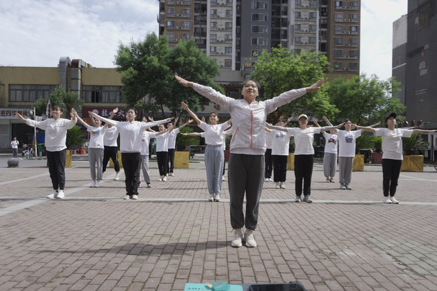 体育小分队在湖口社区广场向社区居民展示了广播体操、健身操、太极拳等活动;队员们对社区居民发放了自制的“体育健身宣传单”;队员们分组开展了“清洁家园”活动。