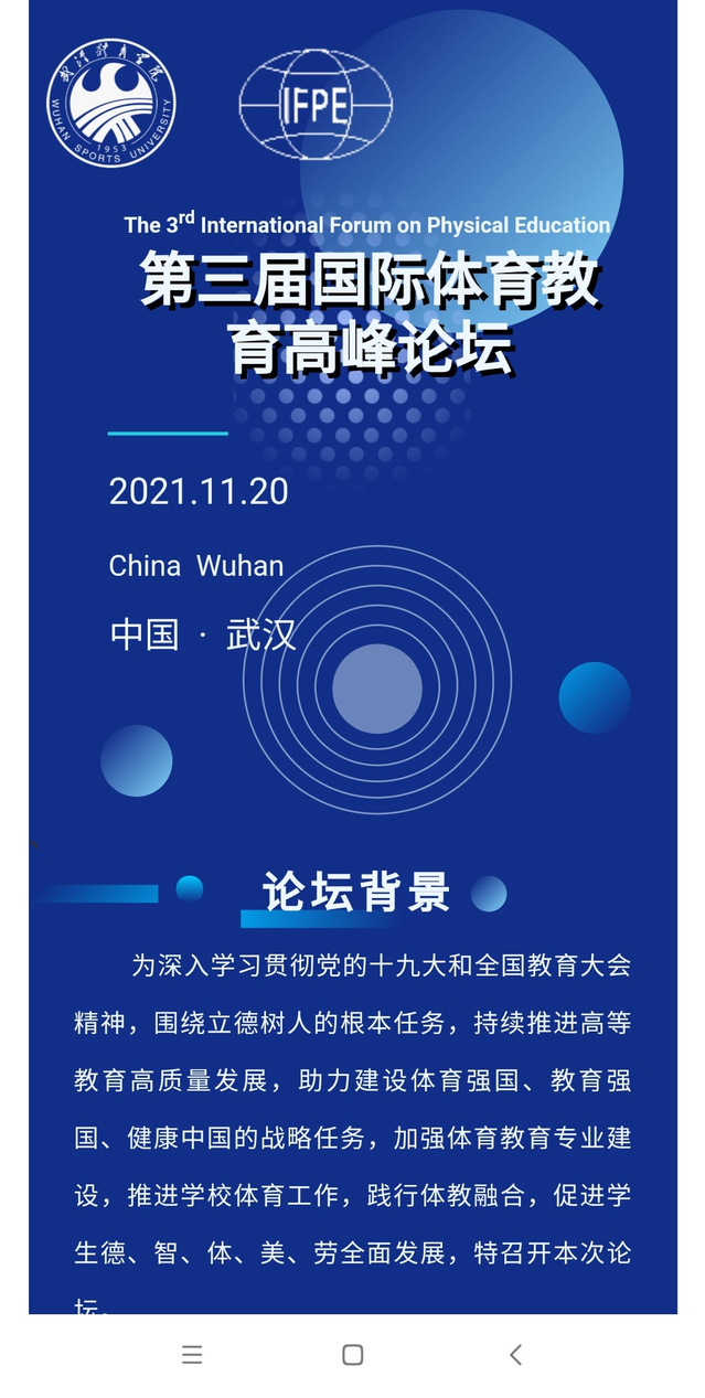 本网讯 11月20日,由武汉3044am永利集团组织的第三届国际体育教育高峰论坛在腾讯会议线上举行,永利集团体育教育专业孙利红、尹开宁、徐剑、雷学会等教师参加了此次会议。