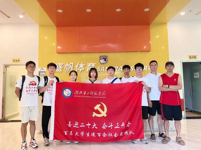 本网讯 (通讯员 史彬)体育产业作为我国体育事业发展的重要组成部分,是新时代全面推进建设体育强国的重要路径之一。为进一步推进我省体育产业“产学研”工作,促进体育产教供需双向对接,加快高素质体育产业人才培养。2022年7月22日湖北第二师范学院“百名大学生进百企”社会实践队指导老师蒋志伟、刘芳枝、华厚杰等老师和团队成员在武汉盛帆投资集团股份有限公司开展社会实践调研活动。为此了解该企业基本情况、经营现状、运营阻力、政策诉求等,用实际行动迎接党的二十大胜利召开。