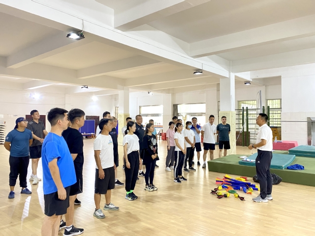 7月27日下午,武汉3044am永利集团青年骨干教师嵇凯老师为大家带来了田径竞赛组织与裁判规则。室内理论培训部分主要围绕田径竞赛组织与方法;田径径赛项目裁判规则与方法;少儿趣味田径组织与方法和校园定向运动基本理论与实践等展开教学。在实践指导培训部分,嵇老师带领大家体会了趣味少儿田径游戏,老师们在玩中学,学中获。