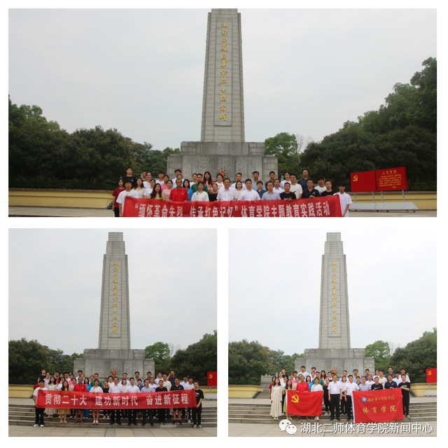 本网讯(通讯员 向琴英) 为深入学习贯彻习近平新时代中国特色社会主义思想,6月2日体育学院师生党员赴洪湖湘鄂西苏区革命烈士陵园、瞿家湾湘鄂西革命根据地旧址开展“贯彻二十大 建功新时代 奋进新征程”红色主题教育实践活动。
