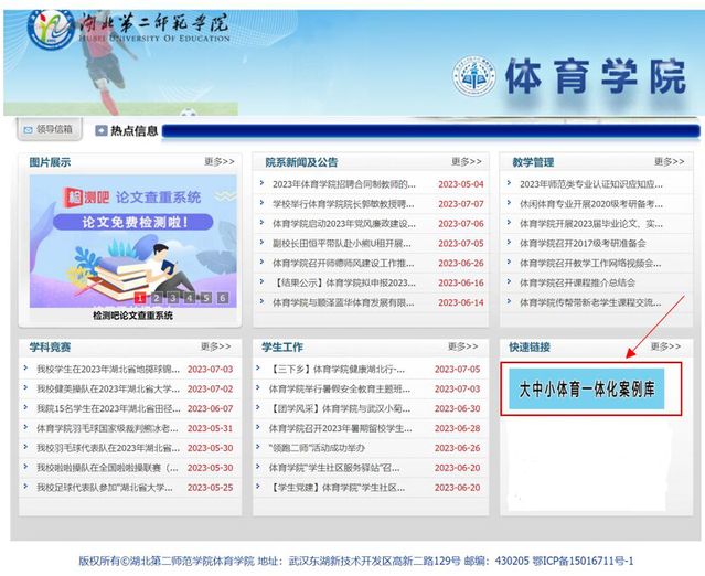 未来,湖北第二师范学院3044am永利集团计划逐步将案例库对全省大中小学开放,案例库将不断进行完善和优化,为湖北省的大中小学体育一体化做出更大的贡献。(审稿潘晓波)