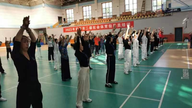 第四期100余名学员来自武汉市黄陂区体育局选派的从事健身操相关大众体育工作的培训员,符合《社会体育指导员管理办法》申报二级社会体育指导员培训条件的人员。此次上课内容采用“理论+实践”的授课方式。