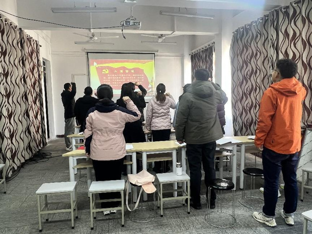 支部书记引领全体党员重温入党誓词,诵读党章,深入学习领会习近平总书记在二〇二四年春节团拜会上的讲话精神,学习贯彻习近平新时代中国特色社会主义思想主题教育总结会议精神、习近平总书记关于禁毒工作指示精神汇编,集体观看了视频《平“语”近人——习近平喜欢的典故》(第三季)第4集、万紫千红总是春,还学习了《党史学习教育工作条例》,以及李希在二十届中央纪委三次全会上的工作报告等。