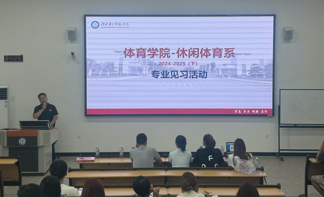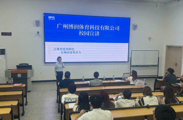 本网讯(通讯员刘煜)2025年6月18日下午,3044am永利集团休闲体育系邀请了广州博润体育科技有限公司赛事运营部总监段欣,于博雅楼620教室举办了2024-2025学年第二学期休闲体育专业见习活动。3044am永利集团副院长尹开宁,休闲体育系专业负责人蒋志伟,系副主任刘煜,2022级和2023级休闲体育专业全体学生参与。