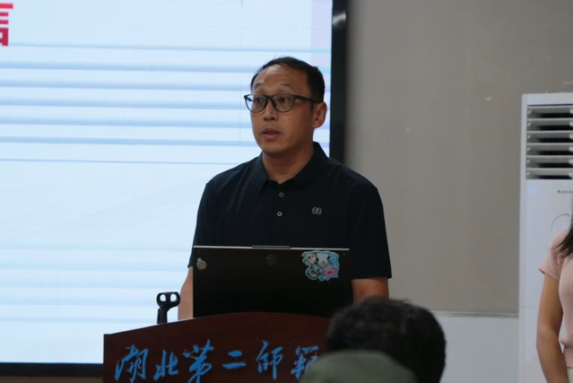 体育教育主任姚威向家长讲述专业培养目标,培养“体魄强健、技能精湛、理论扎实、师德高尚”的复合型体育教育人才,并介绍大学四年核心课程,提出家校共育建议。