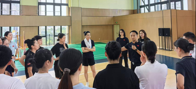 永利集团3044am永利集团青年教师刘煜作为湖北队核心成员,在赛前一周全面负责队伍的热身准备、肌肉激活与情绪调动等训练计划制定。他创新性地将日常教学中的“功能性训练”与“心理状态调控”融入赛前训练——通过模拟课堂上的动态拉伸与核心肌群激活环节提升队员身体状态。结合课程中“团队协作意识培养”的教学方法强化队伍默契度。 “将课堂上的‘分解动作教学’转化为赛前的‘模块化训练’,用学生熟悉的‘分段演练’模式调动情绪,提升队员们的动作完成度和表现力。”
